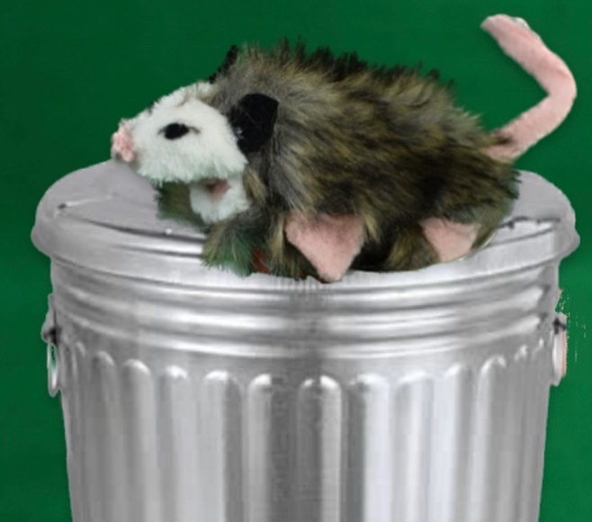It was an opossum on top of a trash can.