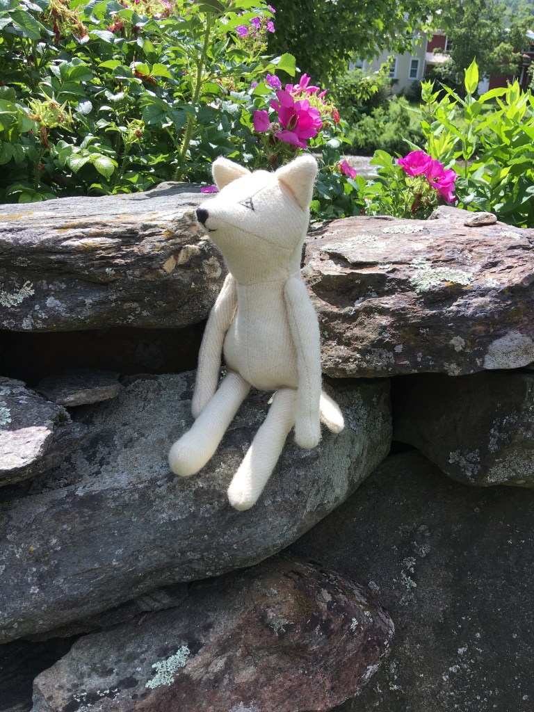 Here are some of Gary’s fox doll cousins (Terry and Larry), in (left) linen and (right) up-cycled wool fabric.