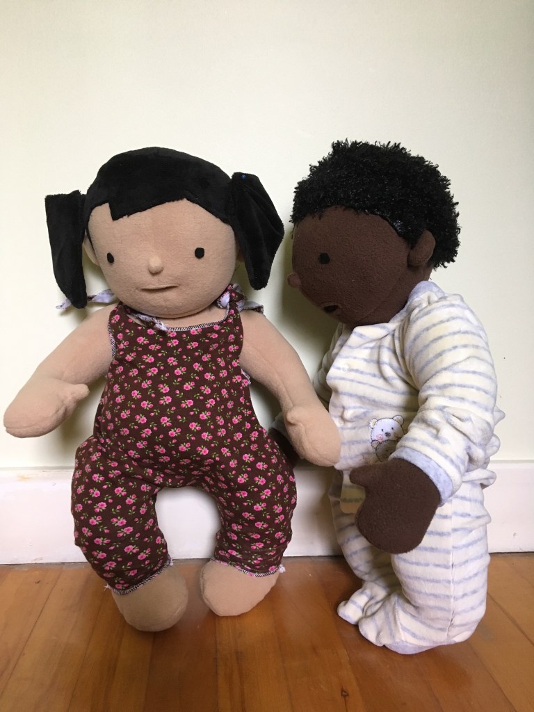 Anyway, both dolls were helpful to test out my patterns and then I sort of tossed them in the toybox. But recently they’ve both been getting a lot of use from my three-year-old.