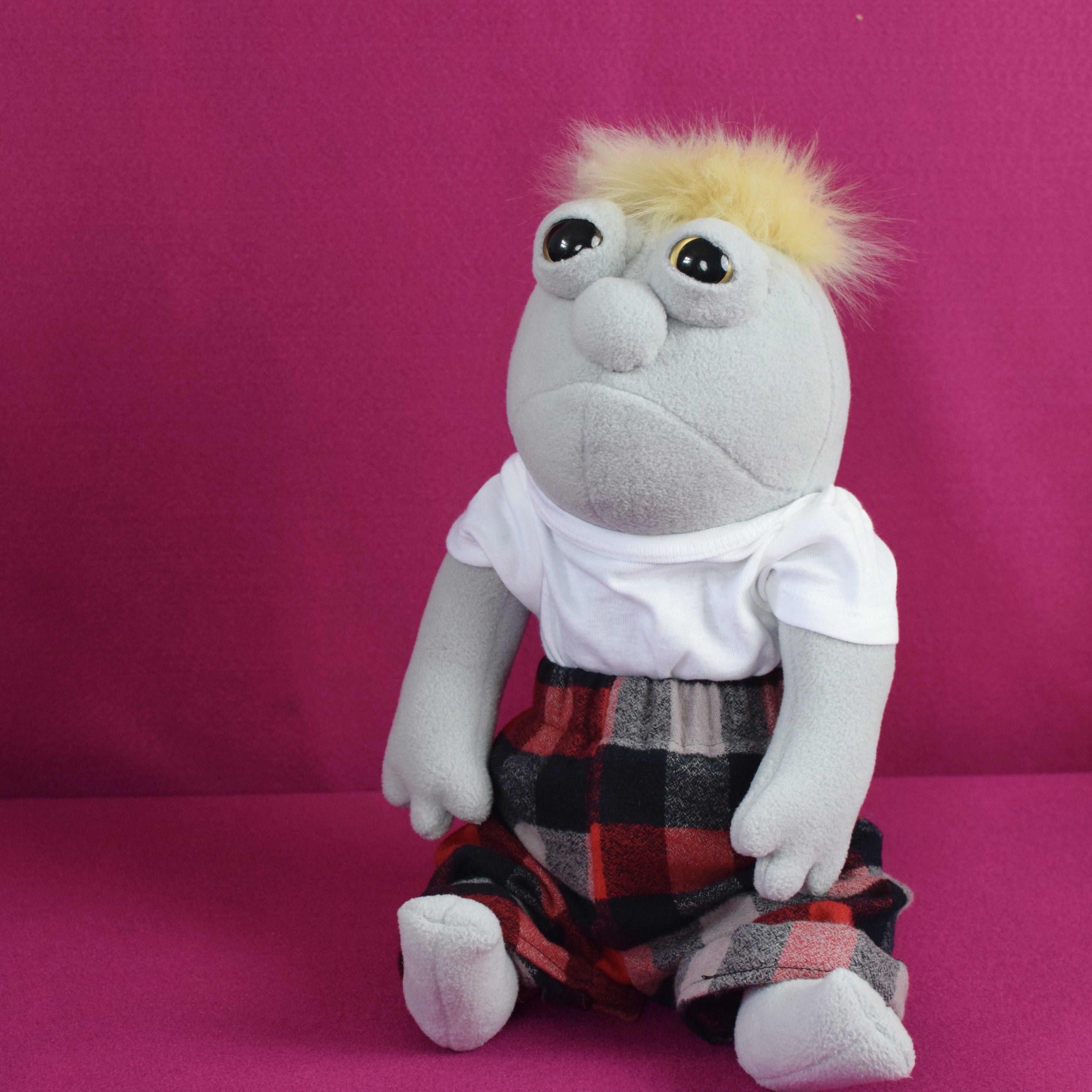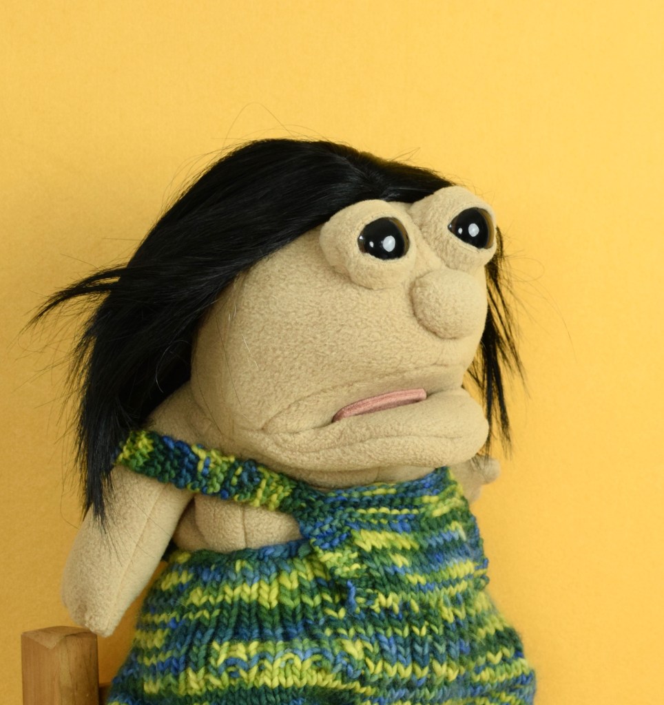 Much to my surprise, the reel got more than a million views in less than a week and garnered a lot of attention and comments. It seems the larger internet community is divided as to whether Willard is scary or cute, and whether giving him eyelids did in fact supply him with a soul and personality as I contended it would. Additionally, many commenters felt that Willard ran anywhere on the continuum from sleepy, to burnt out from a soul sucking retail job, to sedated (which I assure was not my intention when creating this doll!) On the whole, people were immediately obsessed and found him sad and adorable which—hello!—he is. And he’s not the first of my dolls to be these things.