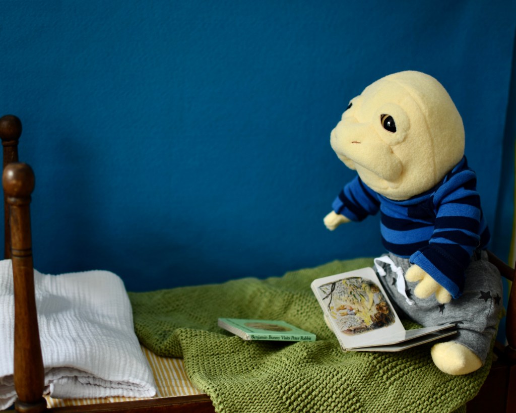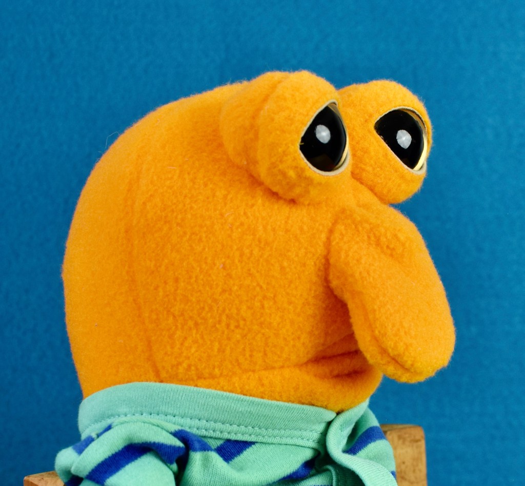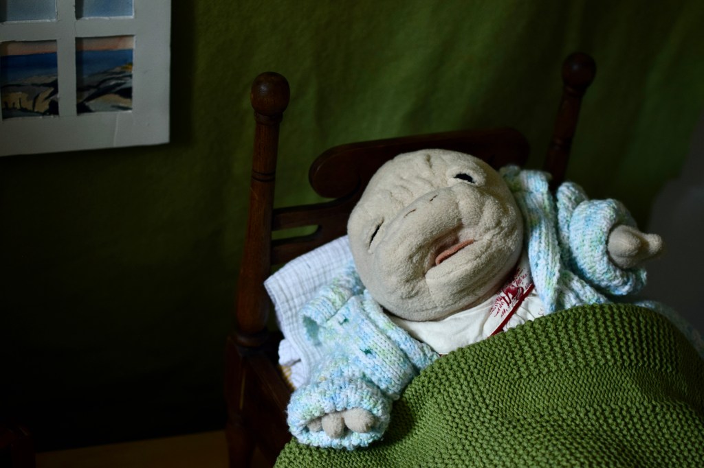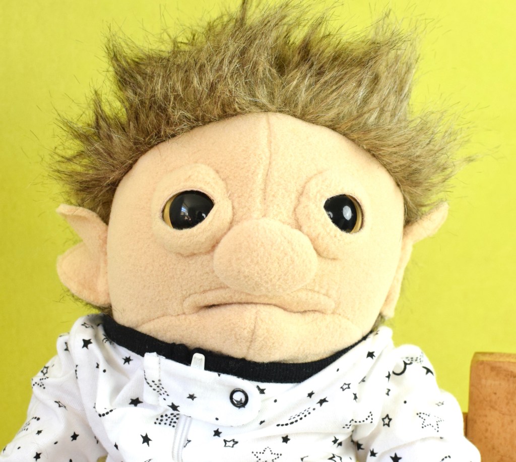 This is Harold, a sad little monster is one of the newest Way Home Creature Nursery babies. He has the same pouty expression as some of my others–but Harold is a little extra melancholy. As I’ve said before, I try to embrace all emotions, so instead of trying to cheer him up, we just let him feel whatever he feels.