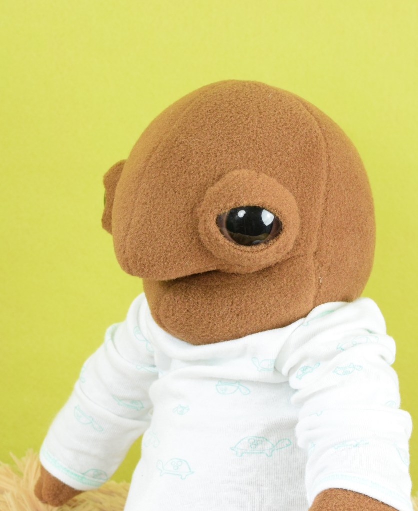 I had wanted to make a new face pattern inspired by manatees. As I neared completion of this doll, I shared him on a reel as an example of one of my many (most) creatures with eyelids rather than just eyeballs.