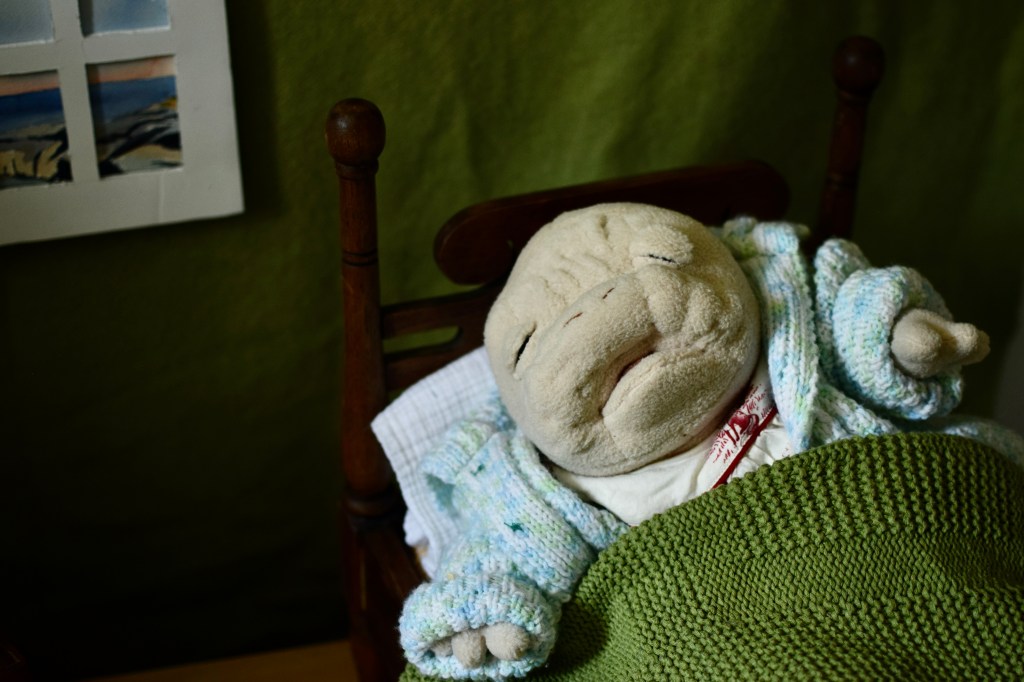 Many adults have one or many plush that they choose for the sensory comfort of the materials and/or the way the doll feels when held or squeezed. This is something that is unique to cloth/textile soft toys as compared to vinyl or rigid sculpture toys. The weight/squish-ability of the toy may be sufficient for some, while others may enjoy a soft toy that has multiple textures. For example, my dolls have a soft body fabric, a hair fabric in a few different textural options and may have a knitted outfit which offers an entirely different tactile experience. We tend to associate the need for sensory stimulation with autistic people, who often enjoy “stimming” or taking sensory breaks, but many other adults also benefit from this. Adults are so often expected to work and thrive in environments (such as a typical office) which are utterly devoid of sensory enrichment when, in fact, such stimuli can help us to regulate and focus. As such, I hear people on Instagram constantly talking about bringing their dolls to work and sometimes actively advocating to reduce the stigma around what are typically considered “childish” objects in “adult” settings.